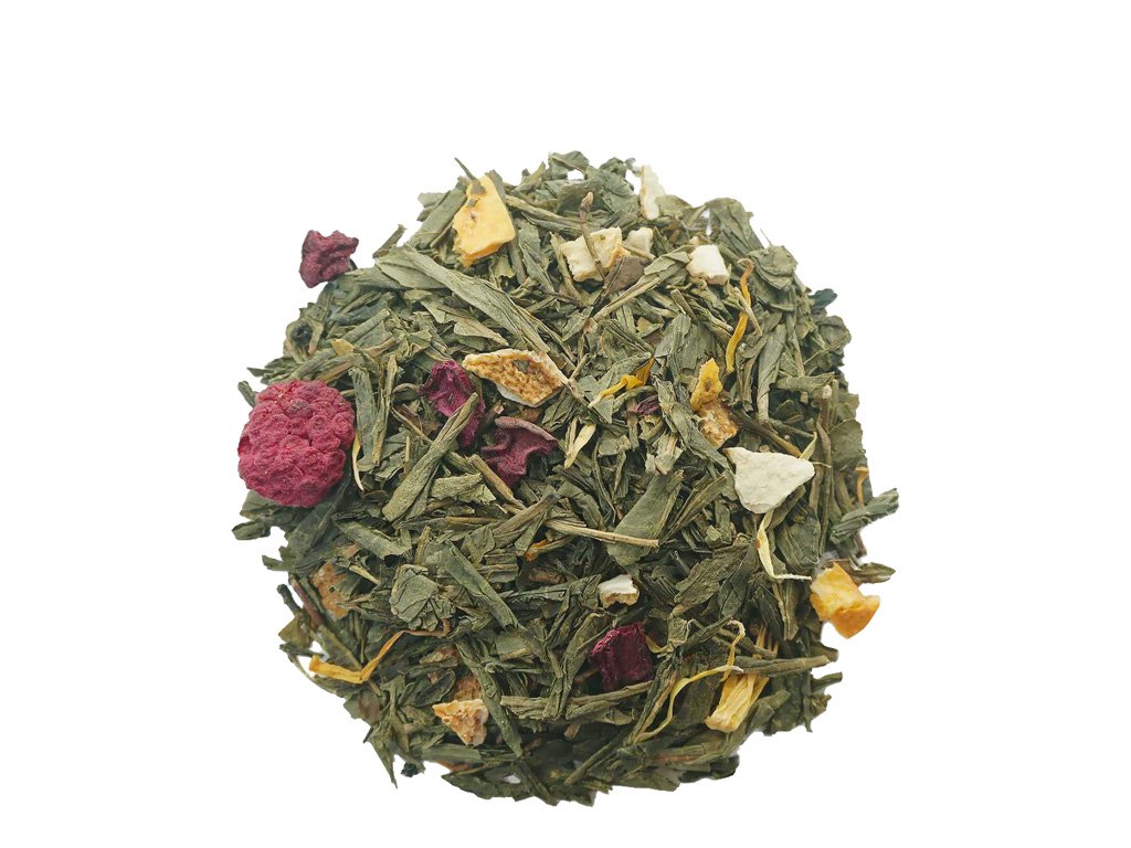 zelený čaj China Sencha*, kúsky citrónovej kôry*, červená repa*, marhuľa*, malina*, kvety nechtíka*, prírodná aróma*.
