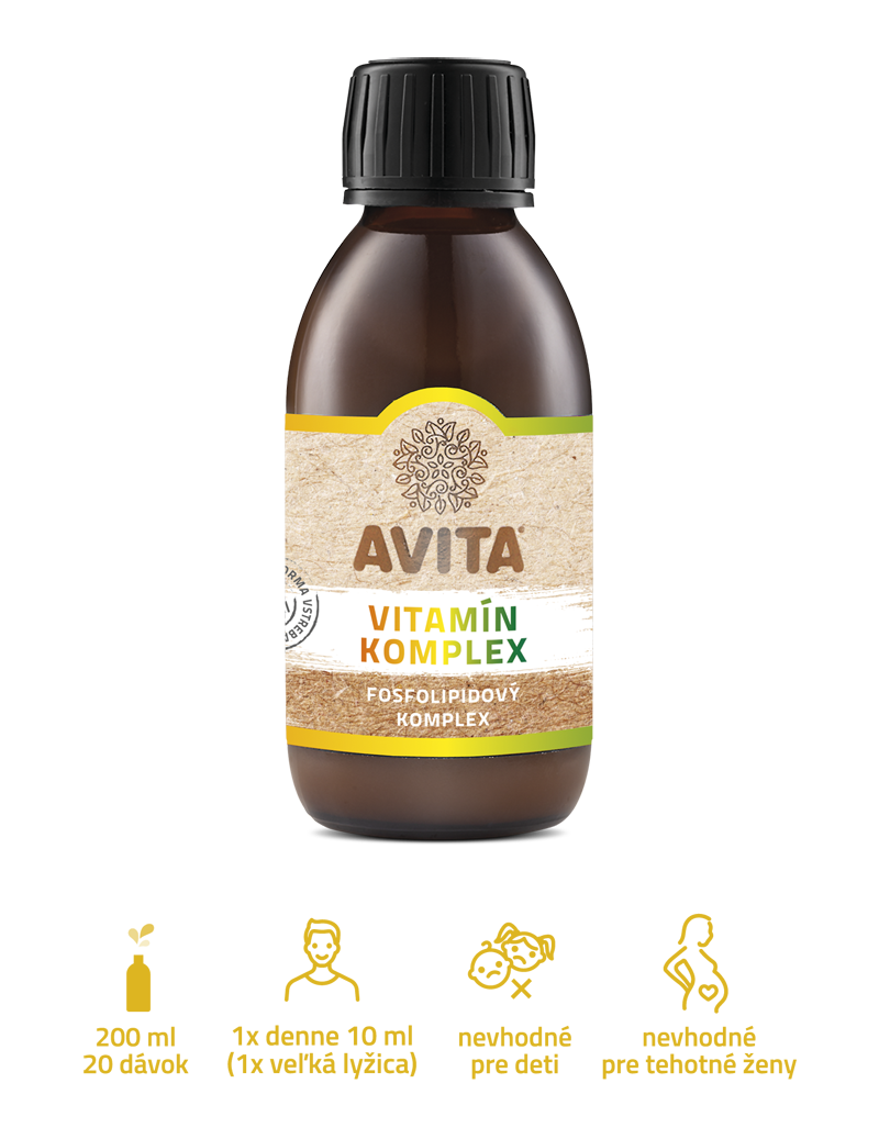 AVITA Vitamín Komplex je tekutý výživový doplnok v lipozomálnej (fosfolipidovej) forme, ktorý obsahuje kombináciu vitamínov, minerálov a stopových prvkov pre podporu imunity, energie a správneho fungovania organizmu.